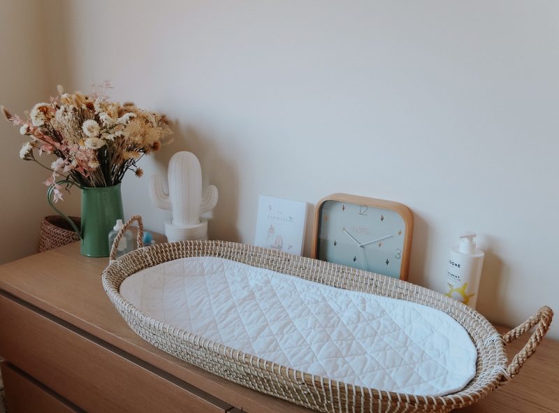 Plan à langer que j’ai adapté à ma commode Malm d’Ikéa.